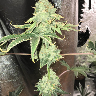 The plant exhibits medium to tall growth with dense, vibrant buds that are heavily frosted, showcasing its robust genetic lineage. Cultivators can expect impressive yields, making it a favorable choice for those seeking both quality and quantity.
